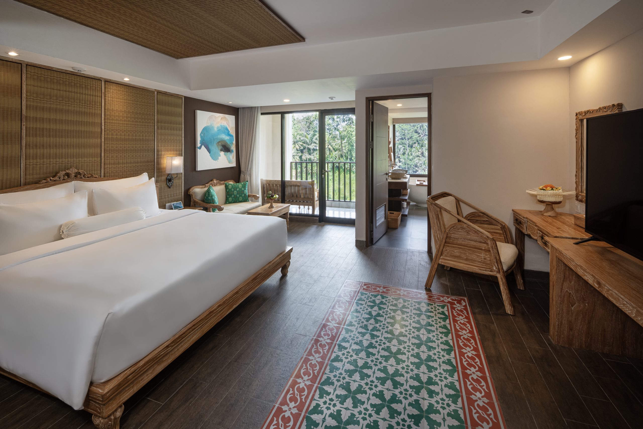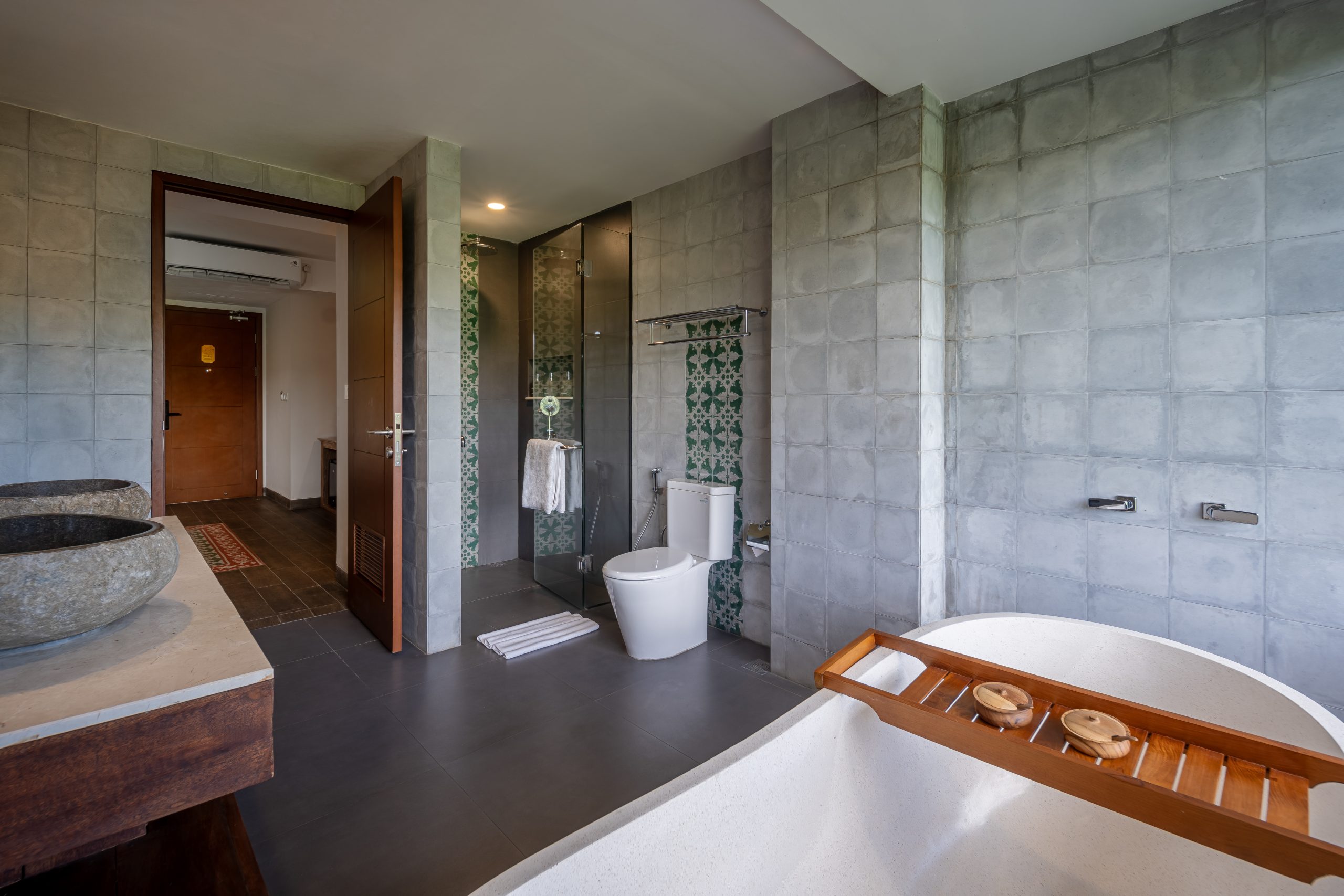 Equipped with modern convenience and curated amenities, the Junior Suite comes with a king-size bed, artisanal furnishing with intricate hand-carved wooden details, an expansive en-suite bathroom and a private balcony or terrace, overlooking the panoramic views of the sweeping forest across the tropical valley.