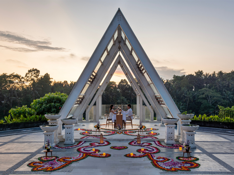 Experience an intimate and exclusive dinner at Bale Banjar, set against the lush tropical jungle of Ubud. Perfect for romantic evenings, this private space offers a serene atmosphere, candlelit ambiance, and curated menus for a truly unforgettable dining experience.