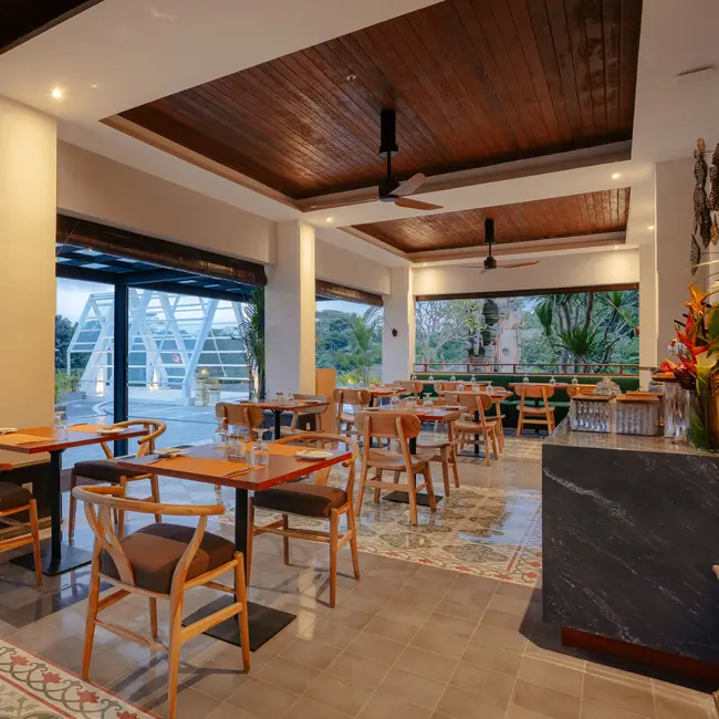 Restaurant with tropical garden, serenade of song birds, gentle breze of ubud valley Wine & Lock Lounge is a curated destination for wine connoisseurs and cigar aficionados, offering an impressive collection of premium wines and fine cigars. Nestled on the second floor with a stunning forest view, the lounge provides an elegant and relaxed atmosphere for indulging in life’s finer pleasures. Open daily from 1pm to 10pm, the lounge presents a unique tradition: with each bottle of wine purchased, guests receive a padlock to inscribe and hang in the designated area by the lounge’s entrance, creating a lasting memento of their visit. Baas Terrace & Resto offers a delightful culinary journey amidst natural splendor. Situated in a serene, semi-outdoor setting with captivating forest views, it is an all-day dining haven. Begin your day with a sumptuous buffet breakfast featuring a delectable array of choices, complemented by an enticing all-you-can-eat à la carte breakfast menu. In-house guests are treated to a complimentary afternoon tea, adding a touch of indulgence to your stay. For lunch and dinner, the à la carte menu showcases culinary expertise with a range of exquisite dishes. Ume Coffee & Dining