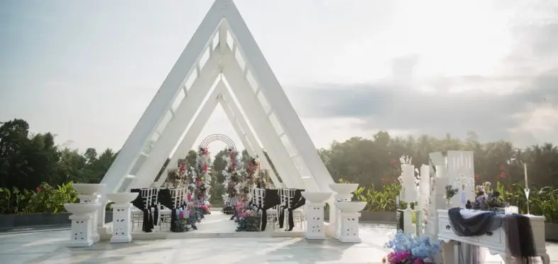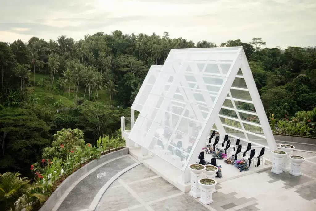 Intimate Wedding at Venya info@metlandvenyaubud.com A sanctuary of romance, Bale Banjar Chapel offers a timeless white architectural design set against the dramatic backdrop of Ubud’s lush jungle. Surrounded by the gentle sounds of nature and sweeping tropical views, this elegant chapel provides an intimate and unforgettable setting for your wedding ceremony. Every detail has been thoughtfully curated to create a serene yet sophisticated atmosphere, allowing your love story to unfold in a venue that is as enchanting as it is memorable. Whether hosting an intimate vow exchange or a grand celebration, Bale Banjar Chapel embodies the perfect harmony of elegance, nature, and everlasting romance. Ceremonial Chapel